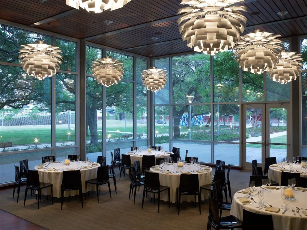 Surrounded by Brazilian IPE wood and featuring designer artichoke lamps, the Primavera Room is located at the end of the main floor. The Primavera Room includes a spacious private deck that has a breathtaking view of the natural gardens of Discovery Green Park, this includes the shaded walkway featuring 100 yr old oak trees, the butterfly garden, the Maconda’s Grove and the 10,000 sq ft Grace Event Lawn.